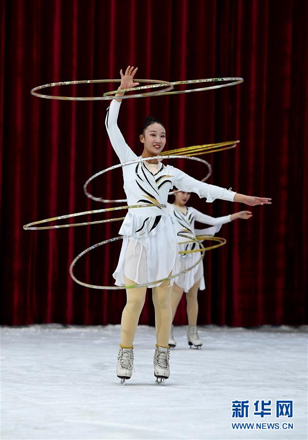 12月5日,新蔡县冰上职业艺术学校的学生在进行冰上杂技训练。 河南省新蔡县冰上职业艺术学校共有在校生69人,其中年龄最小的4岁,最大的不过19岁。除了学习文化课外,他们每天大部分时间都要进行基本功和冰上节目编排训练。 “每当我穿上冰刀鞋登上舞台,就感觉自己像鸟儿一样在飞翔。”17岁的刘艳玲说。通过刻苦训练,学员们表演的一系列集冰上杂技、冰上舞蹈、花样滑冰、魔术于一体的节目多次登上国内外舞台,并获得奖项。 新华社记者 李安 摄