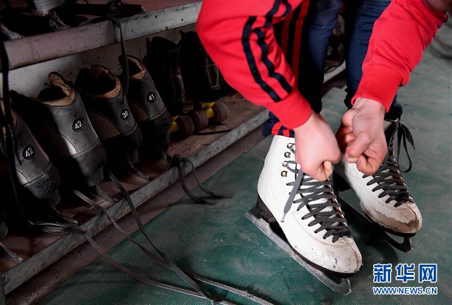 12月6日,新蔡县冰上职业艺术学校的学生在穿冰刀鞋。 河南省新蔡县冰上职业艺术学校共有在校生69人,其中年龄最小的4岁,最大的不过19岁。除了学习文化课外,他们每天大部分时间都要进行基本功和冰上节目编排训练。 “每当我穿上冰刀鞋登上舞台,就感觉自己像鸟儿一样在飞翔。”17岁的刘艳玲说。通过刻苦训练,学员们表演的一系列集冰上杂技、冰上舞蹈、花样滑冰、魔术于一体的节目多次登上国内外舞台,并获得奖项。 新华社记者 李安 摄