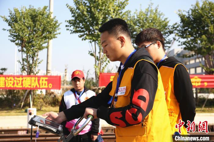 参赛选手使用轨检小车进行数据采集。 朱柳融 摄