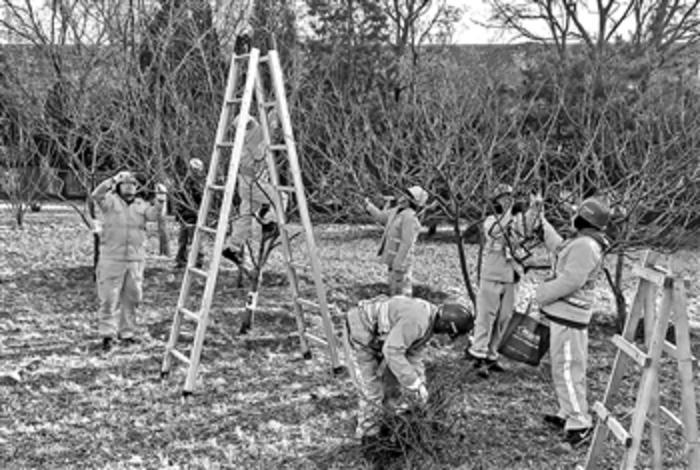 每年冬季一进入树木修剪期,该单位都会以此为契机,将日常修剪工作变成培训、劳动竞赛并由裁判打分排名的形式进行,让职工在比赛中找不足、补短板。(工人日报—中工网记者 王伟伟 摄)