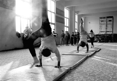 “每当我穿上冰刀鞋登上舞台,就感觉自己像鸟儿一样在飞翔。”17岁的刘艳玲说。通过刻苦训练,学员们表演的一系列集冰上杂技、冰上舞蹈、花样滑冰、魔术于一体的节目多次登上国内外舞台,并获得奖项。图为新蔡县冰上职业艺术学校的学生在进行基本功训练。