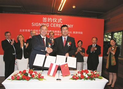 ①与奥地利MODUL旅游学院签订第二个10年合作办学协议