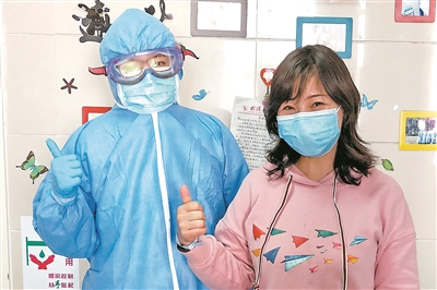 “我能感受到你们防护服里面的奉献精神、护目镜后面的仁爱之光,这让我树立战胜疫魔的信心……”日前,武汉科技大学医院的医护人员收到出院患者曹女士(右)的感谢信,并附上一张患者心中最美的合影。