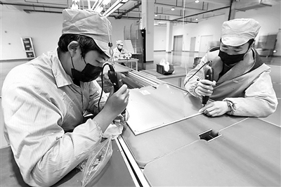 安徽阜阳技师学院的“顶岗实习生”和企业员工一起在安徽中电晶超照明有限公司灯具生产线工作。为缓解企业缺工问题,在阜阳市人社局和开发区管委会的组织下,阜阳技师学院电气自动化、数控机床、汽车维修等专业的500多名“顶岗实习生”,近日进驻当地60余家企业顶岗实习,在锻炼学生实际操作技能的同时缓解企业用工难题,助力企业有序复工复产。王彪 摄