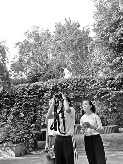 广州市天河区长湴小学学生边观鸟边阅读。刘盾 摄