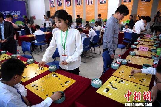 中新网合肥5月3日电(记者 韩苏原)3日,第六届“庐阳·志邦杯”中日韩三国围棋名人混双赛在合肥三国新城遗址公园金汤虎台开赛。比赛间隙,中国围棋协会主席王汝南、中国围棋协会副主席聂卫平带着围棋大师们走进安徽合肥校园,与学生们进行对弈交流。