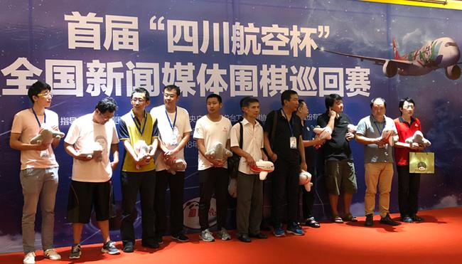 2018首届四川航空杯全国新闻媒体围棋巡回赛9月2日在锦江宾馆落幕,经过2天6轮激战,重庆媒体联队、中央广播电视总台、上海弈客、人民日报、新浪网、山西人民出版社、新疆媒体联队和四川媒体联队分列前8名。