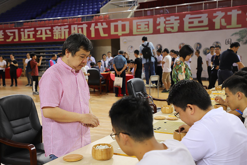 人民网深圳10月15日电(管若寒)10月14日晚,粤港澳大湾区大学生围棋联赛在深圳大学顺利收官,“国手进校园”指导棋活动随即展开。参加比赛的大学生代表们在最后一轮比赛结束后,接受了来自聂卫平、容坚行、常昊、张璇、周睿羊、罗洗河、梁伟棠、黄佳、邱金波等著名棋手的棋艺指导,亦有部分校外棋迷专程前来与明星棋手见面合影并参与指导棋活动。