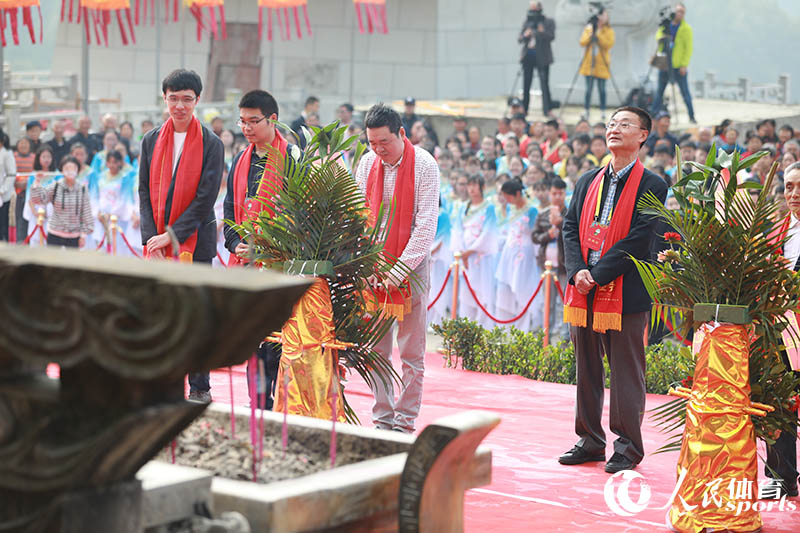 人民网盐亭10月17日电(管若寒)10月17日,适逢“嫘祖杯”第31届中国围棋名人战总决赛休赛日,北京市政协原副主席闫仲秋,人民日报高级记者、人民体育首席顾问陈昭,人民网体育部主任、人民体育董事长朱凯,围棋世界冠军马晓春,现任中国围棋“名人”连笑,本届名人战挑战者芈昱廷等前来四川盐亭县参赛的嘉宾、棋手等,与盐亭当地领导一同参加了嫘祖故里酬蚕节祭祖仪式,并上前敬献了花篮和香。