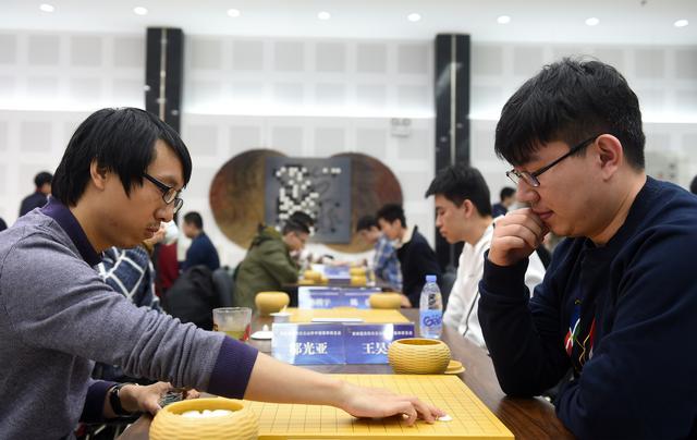 第四届洛阳白云山杯中国围棋棋圣赛开赛 12月20日,邬光亚(左)和王昊洋在预选赛中。 当日,第四届洛阳白云山杯中国围棋棋圣赛在北京开幕,本月将在中国棋院进行预选赛、入围赛和资格赛。 新华社记者贾宇辰摄
