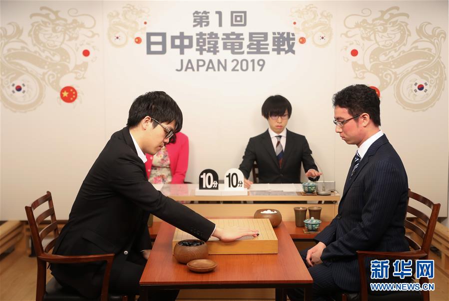 4月11日,柯洁(左)和一力辽在比赛中。 当日,在日本东京进行的第一届中日韩龙星战首场比赛中,中国棋手柯洁不敌日本棋手一力辽。 新华社记者杜潇逸摄