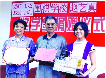 许宛云(左)、赵艺真(右)母女向新民应氏围棋学校捐赠奖学金