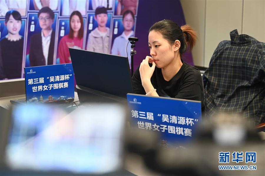 9月27日,中国棋手潘阳在第一轮比赛中负于韩国选手金彩瑛。 当日,第三届“吴清源杯”世界女子围棋赛在福州长乐开赛。来自中国、日本、韩国等7个国家和地区的24位棋手将通过三天三轮比赛的较量,决出四强,进军总决赛。 受疫情影响,本届比赛采用线上线下相结合的方式进行。境外选手在各自国家或地区通过连线,以网络对弈方式比赛,其他选手则在福州面对面博弈,境内外比赛同步展开。 新华社记者林善传摄