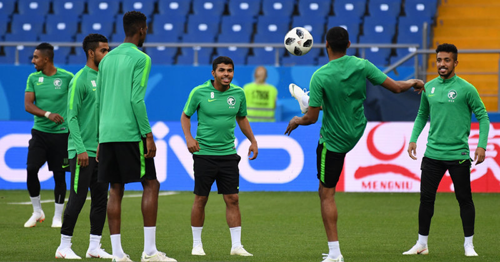 北京时间昨日,沙特阿拉伯球员在俄罗斯顿河畔罗斯托夫进行训练,备战今晚对阵乌拉圭队的比赛,此战将很大程度决定沙特的去留。