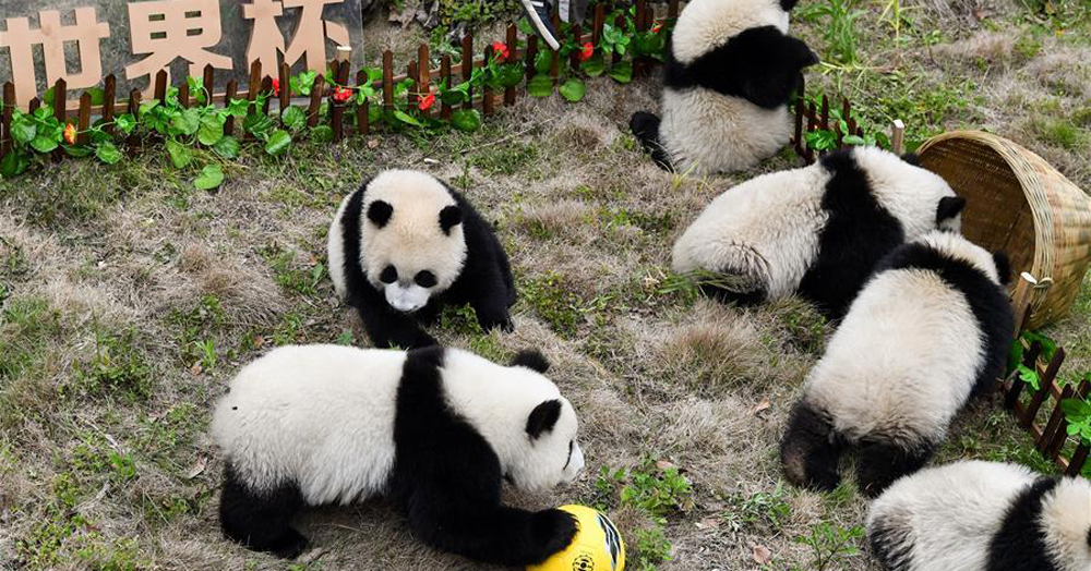2018年俄罗斯世界杯前夕,中国大熊猫保护研究中心在卧龙神树坪基地为8只不满一岁的熊猫宝宝举办了一场趣味横生的熊猫“足球赛”,为世界杯开幕助威。