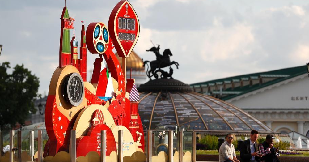 体育场附近的一个世界杯开赛倒计时装置,时间显示,距离比赛开始不到一天时间。