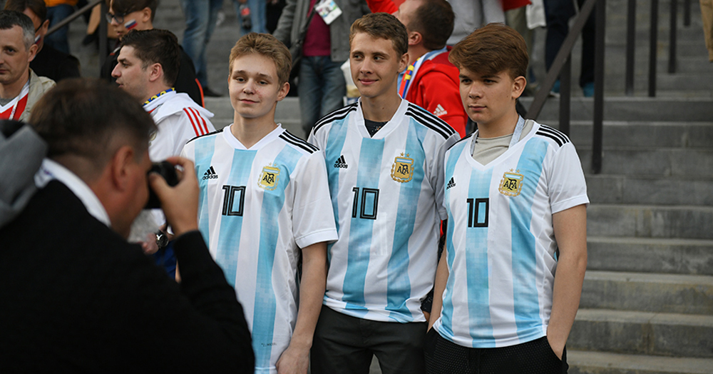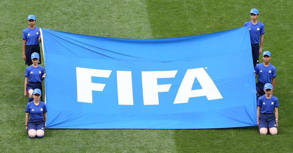 6月14日,来自中国贵州黔东南苗族侗族自治州丹寨县的六位少年护送国际足联会旗入场。当日,俄罗斯世界杯揭幕战在莫斯科拉开战幕。