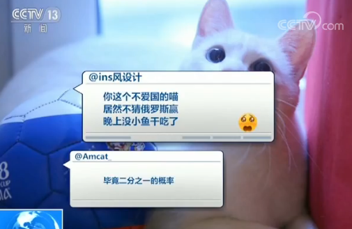 有网友说,“你这个不爱国的喵 (居然不猜俄罗斯赢),晚上没小鱼干吃了”;“毕竟二分之一的概率”;“有颜值就够了 谁在乎预测成功率多少呢”。