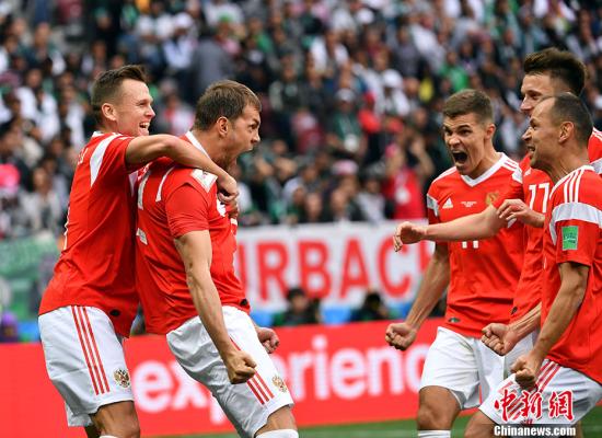 北京时间6月14日23点,俄罗斯世界杯揭幕战在莫斯科卢日尼基体育场打响,东道主俄罗斯对阵沙特阿拉伯。凭借着替补登场的切里舍夫梅开二度,以及加津斯基、久巴和戈洛温的进球,东道主俄罗斯5-0大比分击败沙特阿拉伯,赢得开门红。