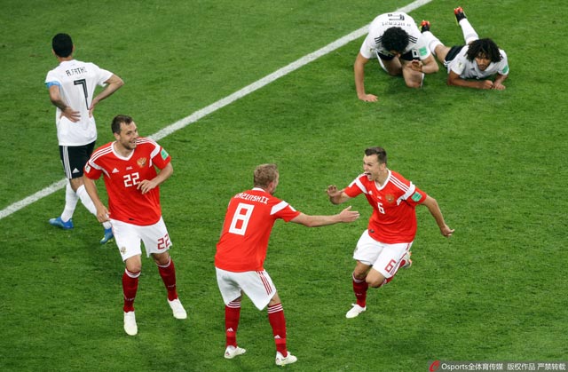 这粒乌龙球不仅拉开了俄罗斯队的进球序幕,也让埃及队的后卫有些魂不守舍。在随后十多分钟的时间里,俄罗斯队继续发起猛攻,而手忙脚乱的埃及队后卫空档明显,被切里舍夫和久巴在第59和第63分钟先后攻破门将的十指关,3:0的优势也将比赛悬念彻底杀死。而伤愈复出的萨拉赫在第72分钟主罚点球命中,虽然无法改变败局,但这粒进球却是埃及人等待了28年的世界杯进球。因为埃及队上次出现在世界杯决赛圈已经是1990年的事情了。