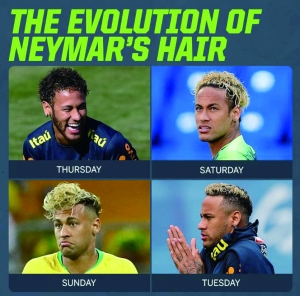 五星巴西明晚将迎来小组赛第二场与哥斯达黎加的较量。早在首秀与瑞士战平之前,这支夺冠热门就因当家球星内马尔顶着一头细碎卷曲的金发而成为网络热议焦点。球星的外表向来与场上表现同样受关注,他们中也有不少人喜欢在发型上做文章。