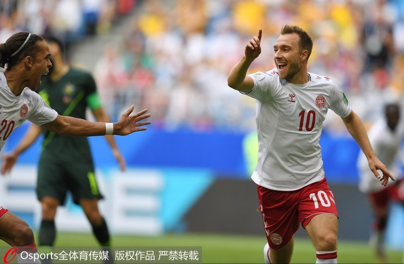 丹麦1-1平澳大利亚 埃里克森建功悍将点射