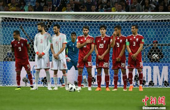 北京时间6月21日凌晨,2018俄罗斯世界杯B组次轮伊朗队与西班牙队的较量在喀山打响。西班牙队凭借迭戈科斯塔一记幸运的进球,一球小胜伊朗队,与葡萄牙同积4分并列小组第一。中新社记者 田博川 摄