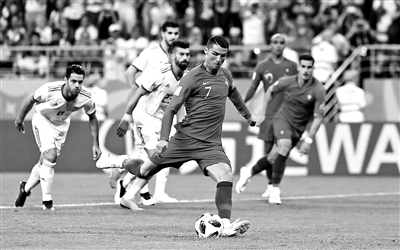 在本届世界杯中,关于点球最有代表性的是第三比赛日,裁判在三场比赛中共判了5记点球,为1998年世界杯以来单日最多的一次。在前晚沙特队与埃及队的比赛中,主裁判给沙特队两粒点球,昨天凌晨葡萄牙队与伊朗队的比赛,双方各获一粒点球。单届世界杯判罚点球的原纪录是18个,分别于1990年、1998年、2002年创造,而本届世界杯在小组第三轮刚开始就刷新了这一纪录,令人咋舌。