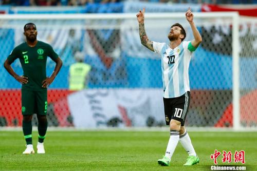 阿根廷队2-1战胜尼日利亚,晋级16强。中新社记者 富田 摄