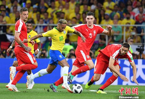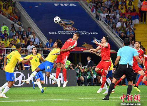 俄罗斯世界杯巴西2:0塞尔维亚。中新社记者 毛建军 摄