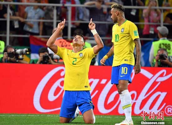 北京时间6月28日凌晨,2018俄罗斯世界杯E组巴西队与塞尔维亚队的比赛在莫斯科斯巴达克球场打响。巴西队凭借“暴力鸟”保利尼奥与蒂亚戈-席尔瓦的进球,2:0完胜塞尔维亚挺进16强。