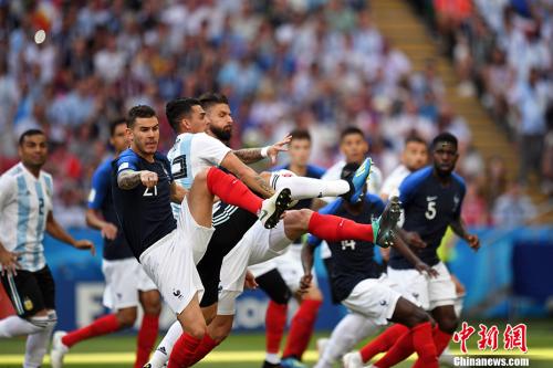 法国队凭借着格列兹曼、姆巴佩、帕瓦尔的进球,4:3淘汰阿根廷挺进8强。中新社记者 田博川 摄