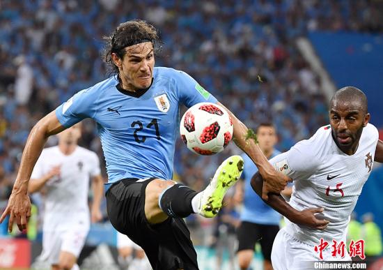 2018俄罗斯世界杯乌拉圭2:1战胜葡萄牙。图为卡瓦尼在赛场上。中新社记者 毛建军 摄