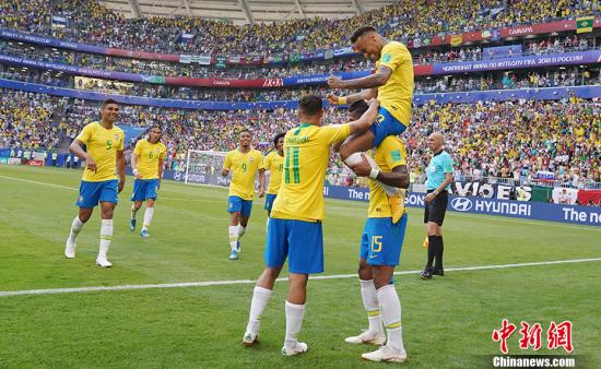 中新网萨马拉7月2日电 凭借内马尔和菲尔米诺的两粒进球,巴西队在2日进行的俄罗斯世界杯八分之一决赛中以2:0战胜墨西哥,连续第7次闯入世界杯八强。墨西哥队则仍未突破魔咒,连续7次无缘世界杯八强。