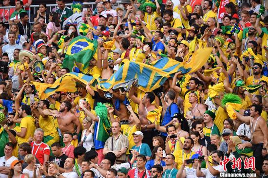 看台上的巴西球迷气氛高涨。中新社记者 毛建军 摄