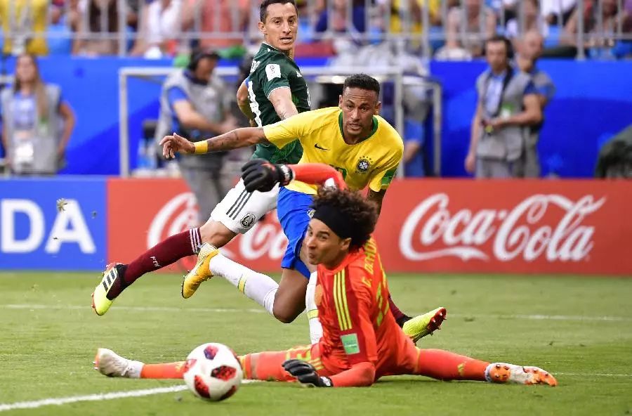 巴西队以2比0战胜墨西哥队,晋级八强。 新华社记者 陈益宸 摄