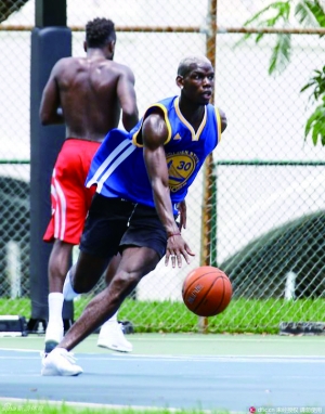 值得一提的是,这位身价将近9千万英镑的中场还对篮球情有独钟。在法国队的驻地,他在酒店的游戏室里玩起了篮球机。在先是做了几次仰卧起坐之后,他开始展示自己的篮球技巧,轻巧地将篮球投入小篮筐之中,甚至还像踢足球那样踢球入筐。随后,他在自己拥有23.7万粉丝的社交网站上分享了这个视频,引发球迷和网友的赞叹。