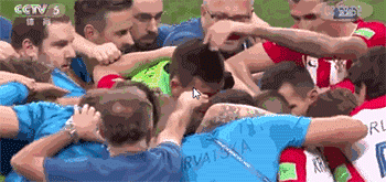 当法国队陷入狂欢的时候,克罗地亚全队围成一个圈,肩并肩互相安慰。淘汰赛中踢了三场加时赛的他们真的拼尽了全力……