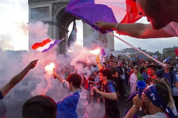 两年前决赛输球后,法国巴黎出现了球迷骚乱,愤怒的法国人投掷石块,点燃汽车,发泄着心中的失望,两年后,场景仍然是一样的混乱,但这次是胜利的疯狂。