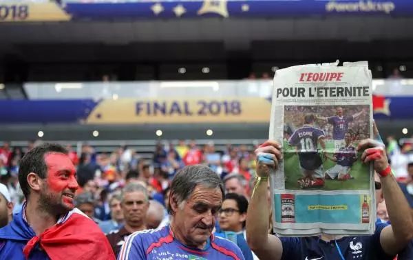 而在俄罗斯莫斯科的比赛现场,法国球迷带来了留存至今的1998年夺冠报纸,这一次,他们见证了自己的球队重回巅峰。