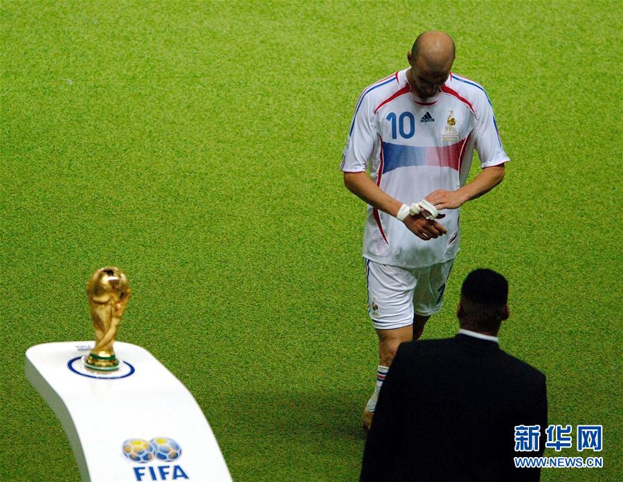 1998年,法国队在本土进行的世界杯足球赛上夺得了球队历史上的首个世界杯冠军。随后的四届世界杯比赛中,“高卢雄鸡”四度出击,力争第二座冠军奖杯,却屡屡铩羽而归。2018年,距离法国队上一次捧起大力神杯已足足过去20年,当年以队长身份捧杯的德尚如今已成为球队的主教练。这一次法国队没有重复在2006年与冠军奖杯擦肩而过的遗憾,决赛中力克克罗地亚队,终于将久违的大力神杯带回法国。图为在2006年德国世界杯对阵意大利队的决赛中,法国队球员齐达内(上)被出示红牌离场时从大力神杯旁经过(2006年7月9日摄)。当日,法国队与意大利队在120分钟内战成1比1平。经过点球大战,法国队以总比分4比6不敌意大利队,屈居亚军。新华社记者刘大伟摄