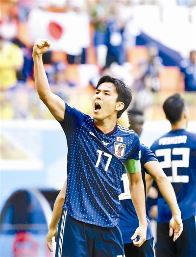 在日本队无缘俄罗斯世界杯八强后,日本队长长谷部诚宣布从国家队退役。图为6月19日,长谷部诚在小组赛日本队战胜哥伦比亚队后庆祝。 新华社记者 贺灿铃 摄