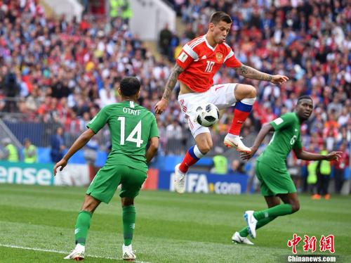中新网客户端北京6月15日电(张一凡) 一场5:0的大胜,东道主俄罗斯在本届世界杯的揭幕战中用一场精彩的表演拉开了64场比赛的序幕。本场比赛双方展开了精彩的博弈,沙特试图用自己的方式掌控比赛,但俄罗斯主帅切尔切索夫的三个变招,让沙特的心理防线逐渐瓦解。