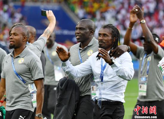 北京时间6月19日晚,2018世界杯小组赛H组首轮,波兰队在莫斯科斯巴达克体育场迎战特兰加雄狮塞内加尔队,这也是世界杯32强中最后两支球队登场亮相。上半场,波兰虽然一度占据了进攻优势,但塞内加尔凭借着他们的速度和身体优势打开了局面,盖耶的远射造成对手的乌龙进球帮助塞内加尔1-0半场领先波兰。下半时,波兰队回传出现失误,尼昂前场断球推射空门再进一球,波兰队随后大举反攻,第86分钟波兰队头球入网,扳回一球。最终塞内加尔队2-1力克波兰,收获3分。图为塞内加尔主帅西塞。中新社记者 毛建军 摄