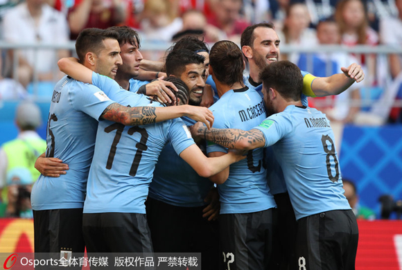 图说:打完小组赛后乌拉圭队3轮全胜1球未丢 全体育图