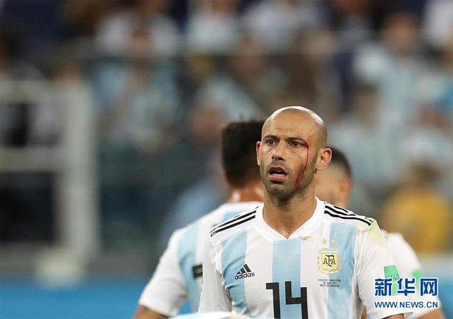 6月26日,阿根廷队球员马斯切拉诺在比赛中。当日,在圣彼得堡进行的2018俄罗斯世界杯足球赛D组小组赛中,阿根廷队以2比1战胜尼日利亚队,晋级十六强。 新华社记者吴壮摄