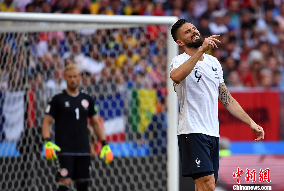 对于法国队来说,本场比赛力争小组第一出现,这样高卢雄鸡将在1/8决赛中避开D组实力强劲的“格子军团”克罗地亚,而是面对D组小组第二。本场比赛双方打平即可携手出线,场面较为沉闷,球迷对对阵双方的懒散状态表示不满,现场爆发出一阵阵的嘘声。 中新社记者 毛建军 摄