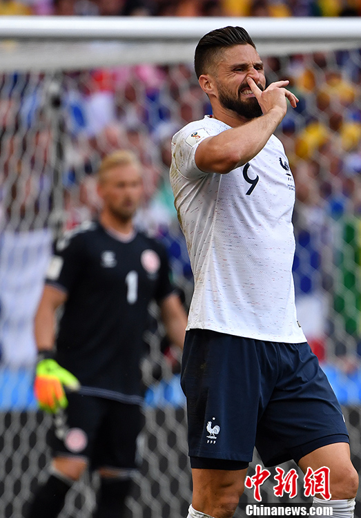 北京时间6月26日晚,2018俄罗斯世界杯C组丹麦与法国的比赛在莫斯科卢日尼基体育场打响。本场比赛,两支球队打平即可携手出线,在同时进行的另外一场比赛中,秘鲁2-0战胜澳大利亚。最终,丹麦队0-0闷平法国,法国队以小组第一出线,将在接下来的比赛中对阵D组第二。丹麦队小组第二出线,在接下来的比赛中对阵实力强劲的“格子军团”克罗地亚。 中新社记者 毛建军 摄