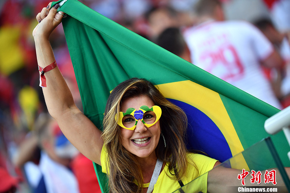 一位激动的巴西女球迷。 中新社记者 毛建军 摄