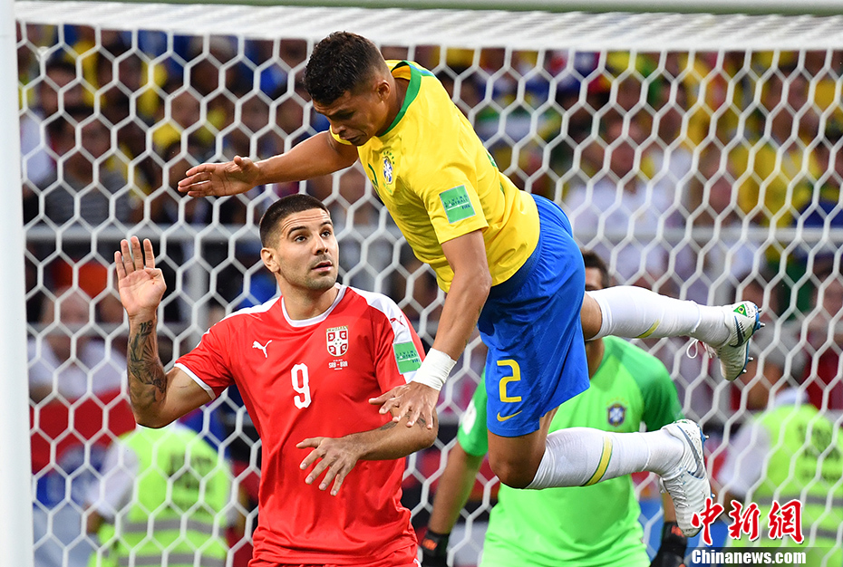 比赛一开始,巨星云集的巴西队迅速进入状态,第6分钟,巴西队热苏斯获得单刀机会,带球至禁区内小角度打门,足球被塞尔维亚队门将斯托伊科维奇挡出,但裁判示意热苏斯越位。 中新社记者 毛建军 摄